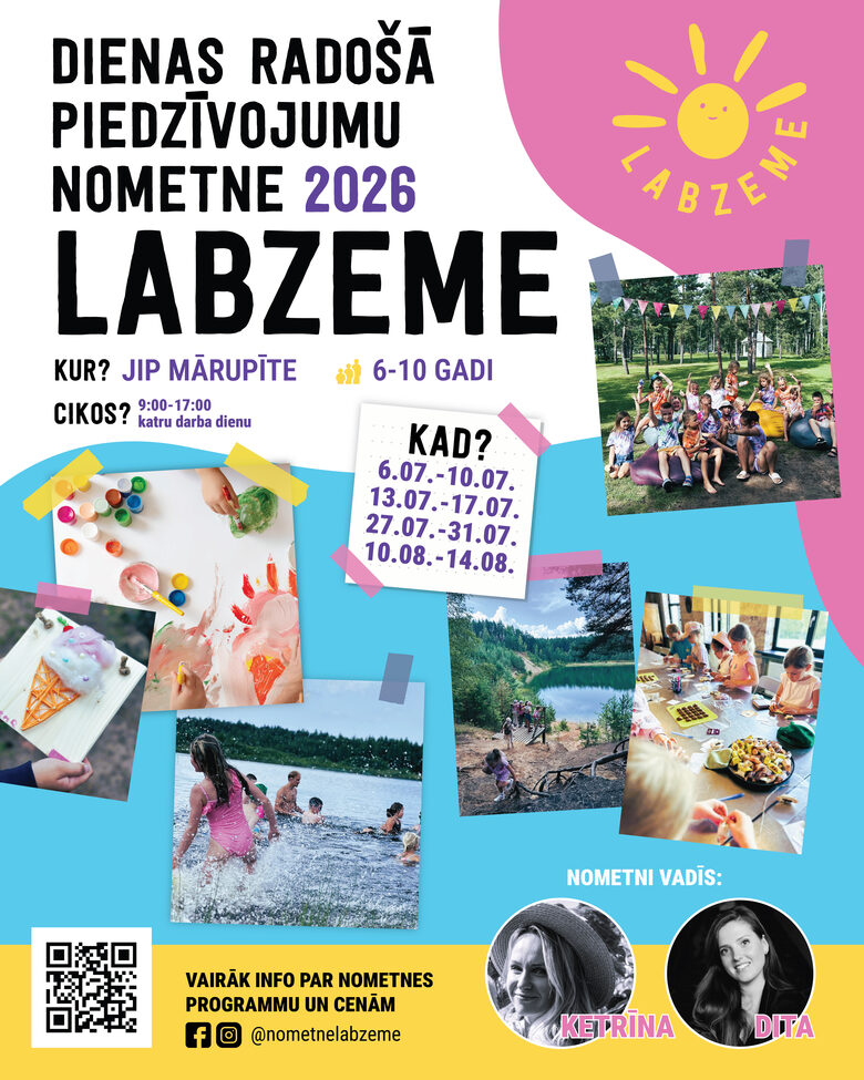 Nometne LABZEME ir radoša piedzīvojumu nometne bērniem no 6 – 10 gadu vecumam. Tās mērķis ir nodrošināt saturisku un jēgpilnu vasaras brīvlaika pavadīšanu svaigā gaisā.